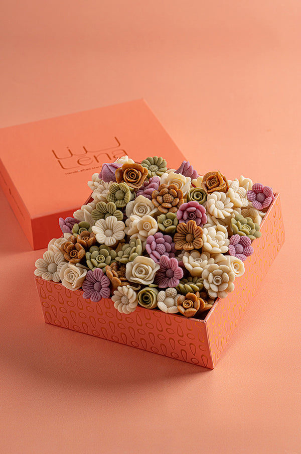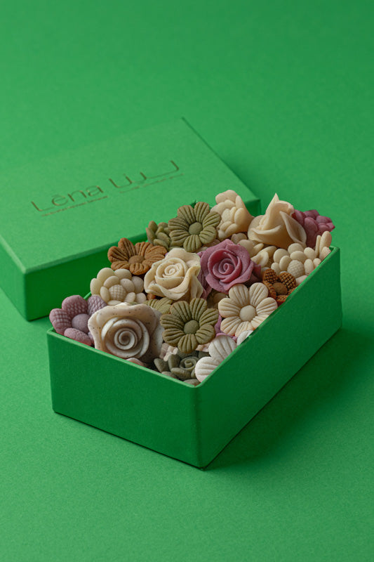 Discover Lena's trademark flower shaped miniatures! Handcrafted petal by petal with clinical precision, our Marzipan flowers will blossom right under your eyes and those you share them with, capturing your whole senses in one perfect moment of pure delight. It’s more than just marzipan! The amount of time needed to craft each flower, the attention to detail, the passion and dedication required, all make of Lena’s creations the ultimate expression of love.